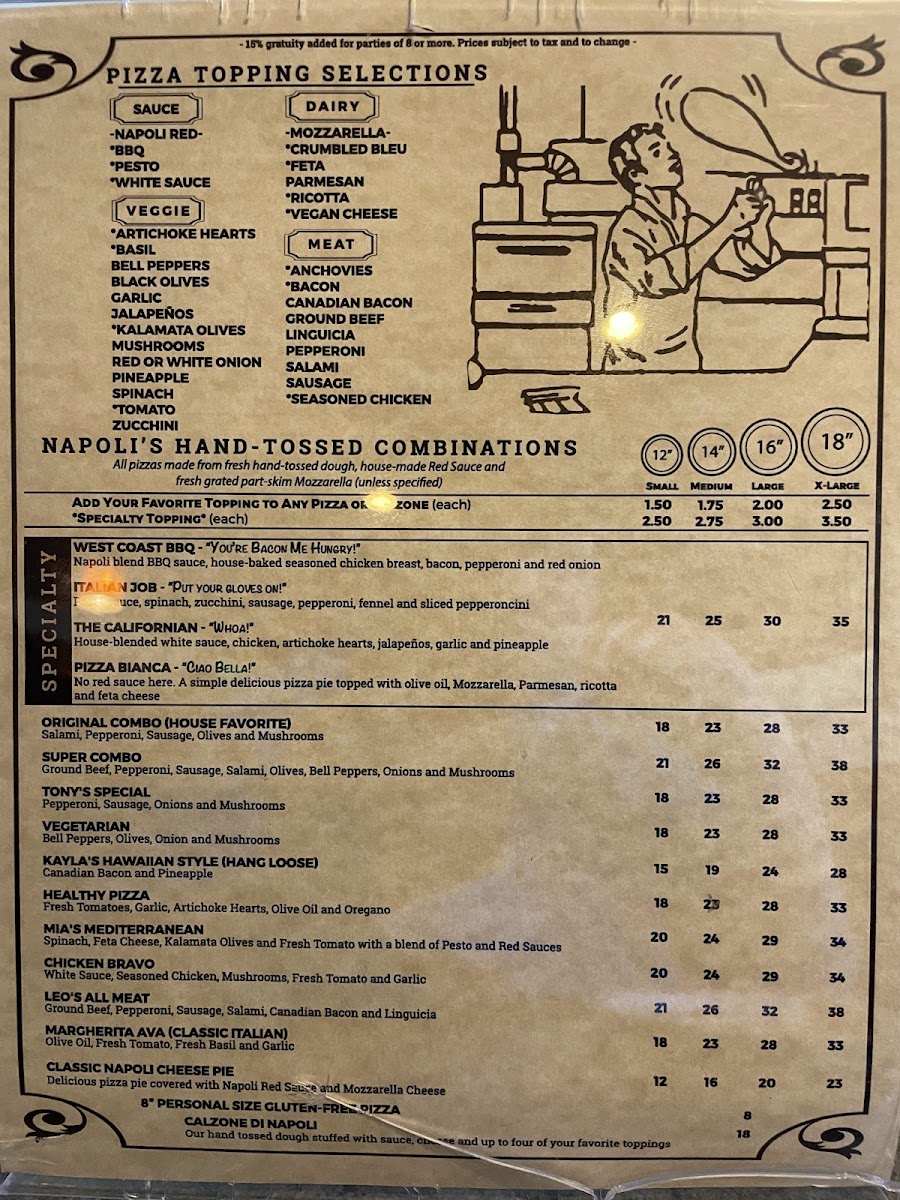 Step inside and you’ll immediately notice the vibrant and welcoming atmosphere. The friendly staff make you feel right at home, with their helpful service ensuring every visit is memorable. Whether you’re dining solo, on a date night, or celebrating with family, Napoli Pizzeria sets the perfect backdrop for making lasting memories.